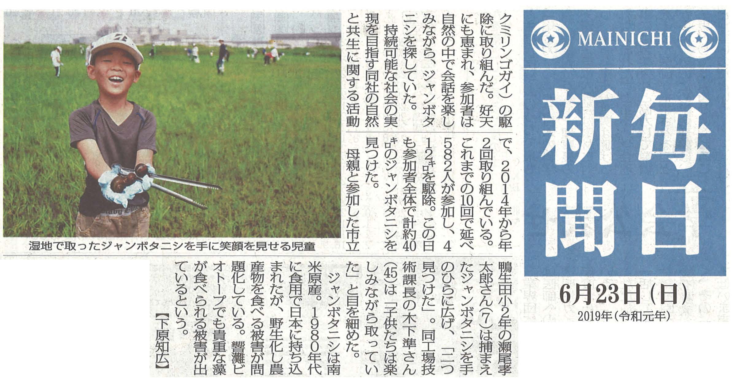 ← 新聞に掲載されました(ジャンボタニシ駆除、6/23))