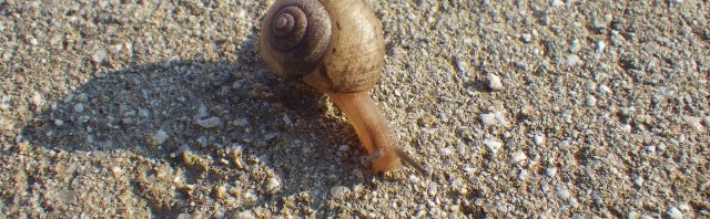 本日のビオトープでは、カタツムリが遠路を歩いている姿が見られました。