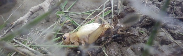 本日のビオトープでは、コオロギの脱皮が見られました。