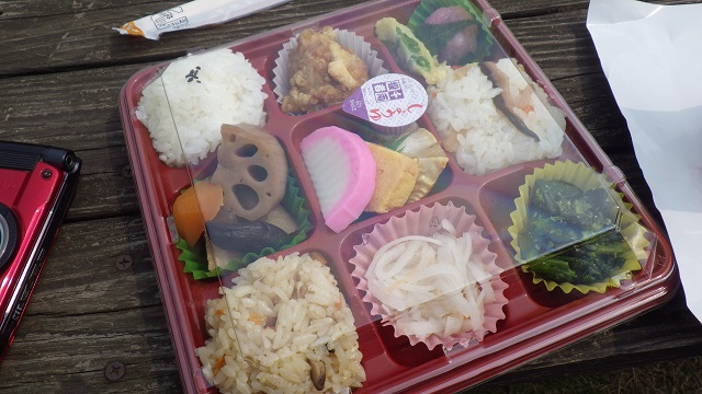 天気が良いのでお日様の下で昼食。お弁当が大好評でした!
