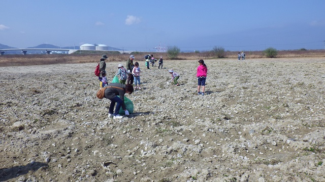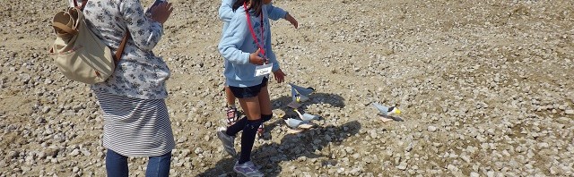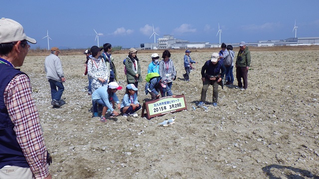 3月29日(日)コアジサシの子育て支援行いました。コアジサシの営巣環境を整えるための、砂れき地の清掃とデコイの設置作業です。まずは野鳥の会北九州代表森本嘉人氏にコアジサシについてのお話をしていただきました。