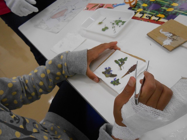 いよいよスタート。まずは押し花にする材料を採集します。