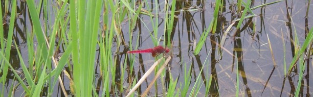 ショウジョウトンボの♂です。私の中では一番「赤とんぼ」の名前にふさわしいトンボです。
