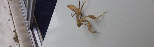 今日はハラビロカマキリがネイチャーセンター南側の壁にくっついてました。