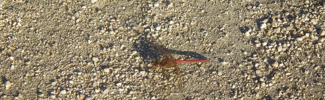 中でもこのタイリクアカネがよく見られます。同じ赤とんぼでも、羽の先端に茶色の班があればコノシメトンボの可能性が高いです。