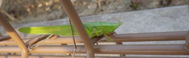 クビキリギスです。成虫で越冬するので、陽気に誘われて出てきたのでしょう。