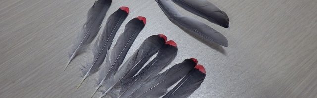 ヒレンジャクの羽が落ちていました。
