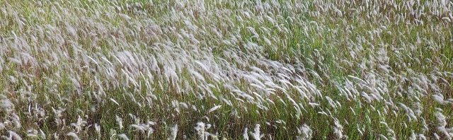 今の時期、この綿毛を散らす風を「茅花流し」というそうです。銀色の波のような光景です。