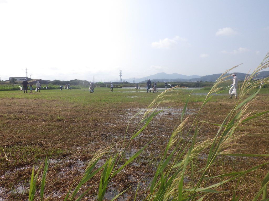 今日は朝からブリヂストンの皆さんがジャンボタニシ駆除のために響灘ビオトープまで来てくださいました!