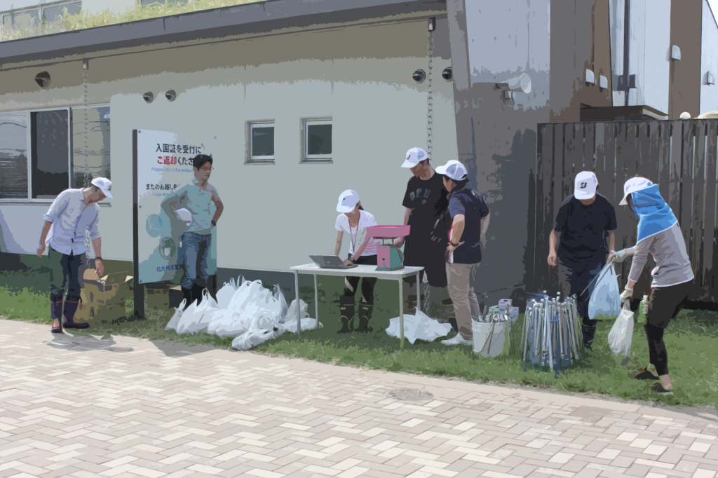 朝9:30頃から開始して一時間ほど拾っていただいた結果、総量としてはなんと74kgのジャンボタニシを拾うことが出来ました!