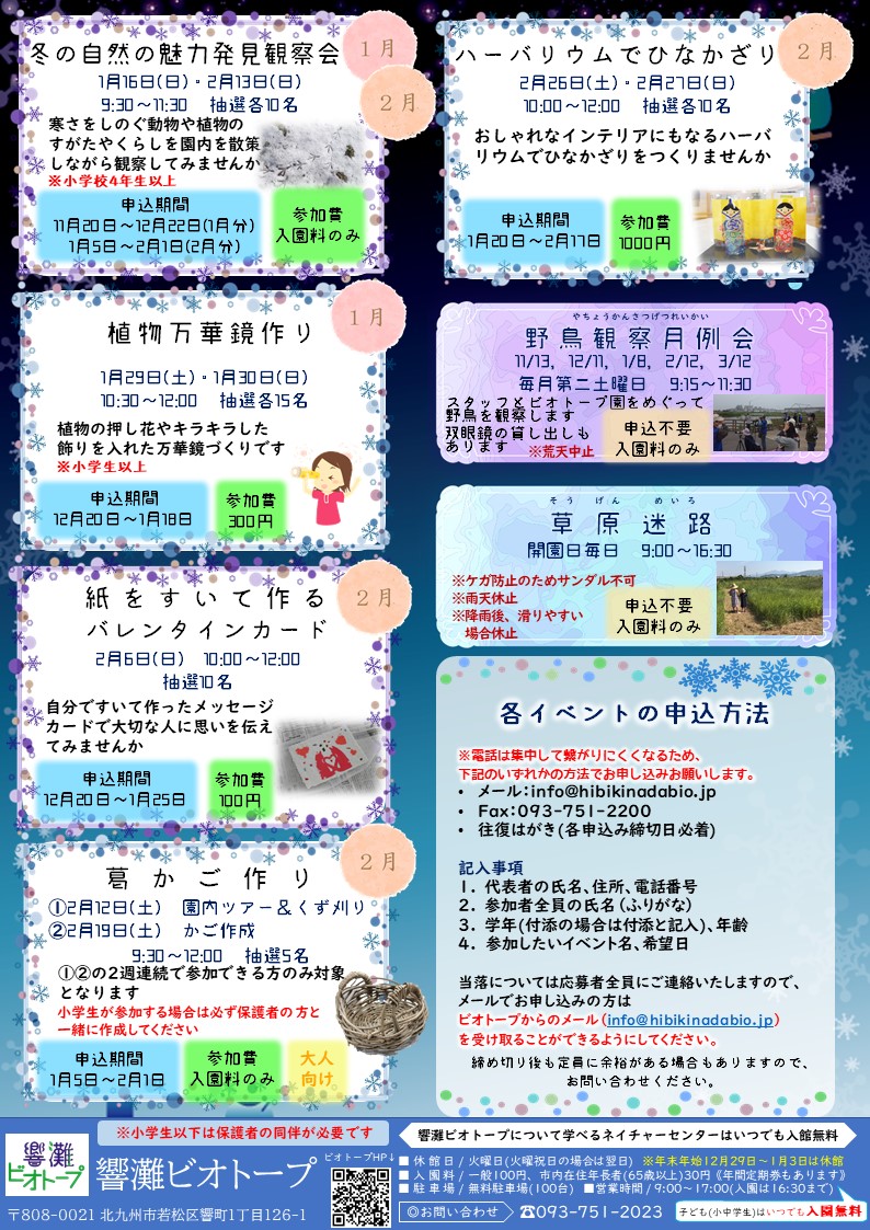 11月から2月までのイベント情報を掲載しています、応募方法や期間などは画像を参照ください