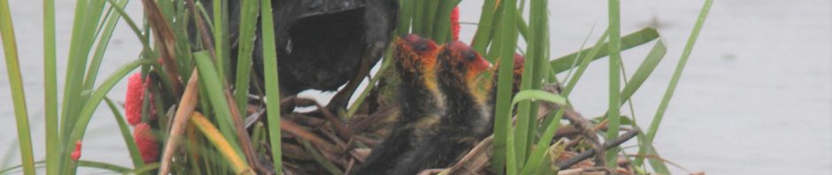 野鳥観察施設を覗いてみると、遠くにオオバンの巣を発見!