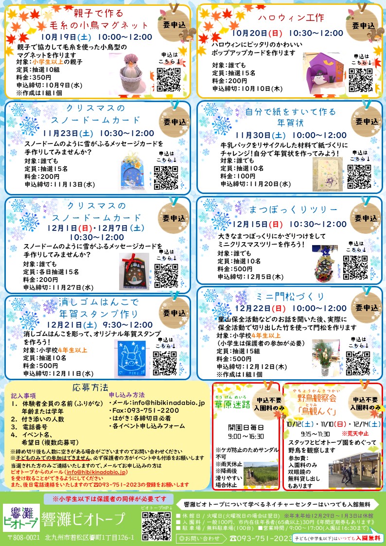10月から12月までのイベントが掲載されたチラシが完成しました