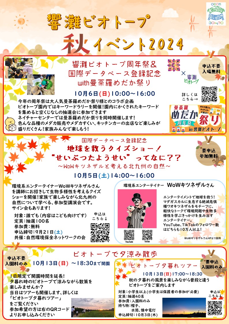 本市では、環境未来都市にふさわしい「都市と自然との共生するまち」を目指し、「響灘・鳥がさえずる緑の回廊創成事業」を進めています。その中核的な取組みとして、響灘地区にある廃棄物処分場跡地に、自然創成となる日本最大級の広さ41haの響灘ビオトープが誕生しました。 市民が生物多様性に配慮しながら自然とふれあえる魅力ある自然環境学習拠点です。