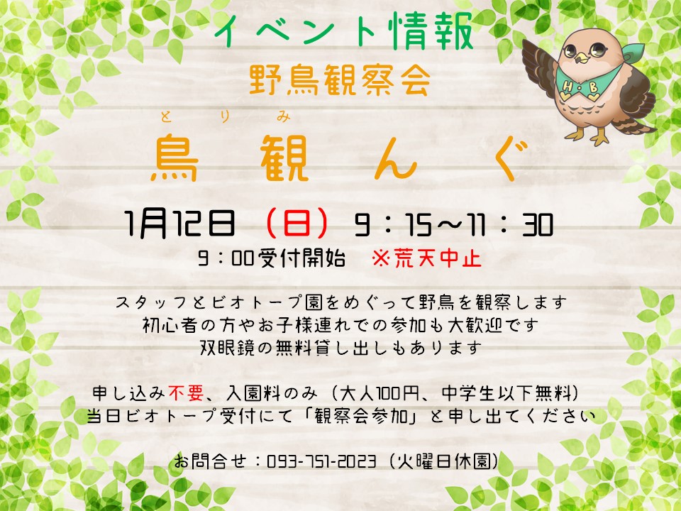 開始時刻:9時15分~ ※双眼鏡無料貸し出しあり