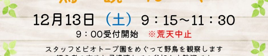 【イベント情報】12月13日(土)野鳥観察会「鳥観んぐ」を開催します
