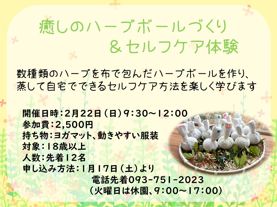 数種類のハーブを布で包んだハーブボールを作り、蒸して自宅でできるセルフケア方法を楽しく学びます!