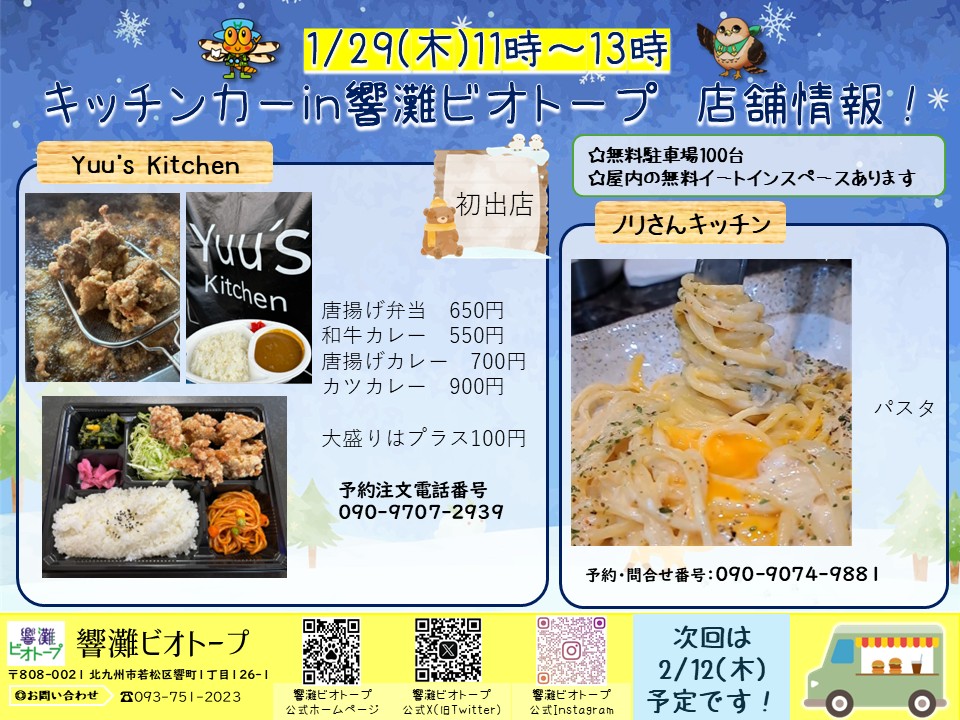 1月29日(木)キッチンカー出店します!