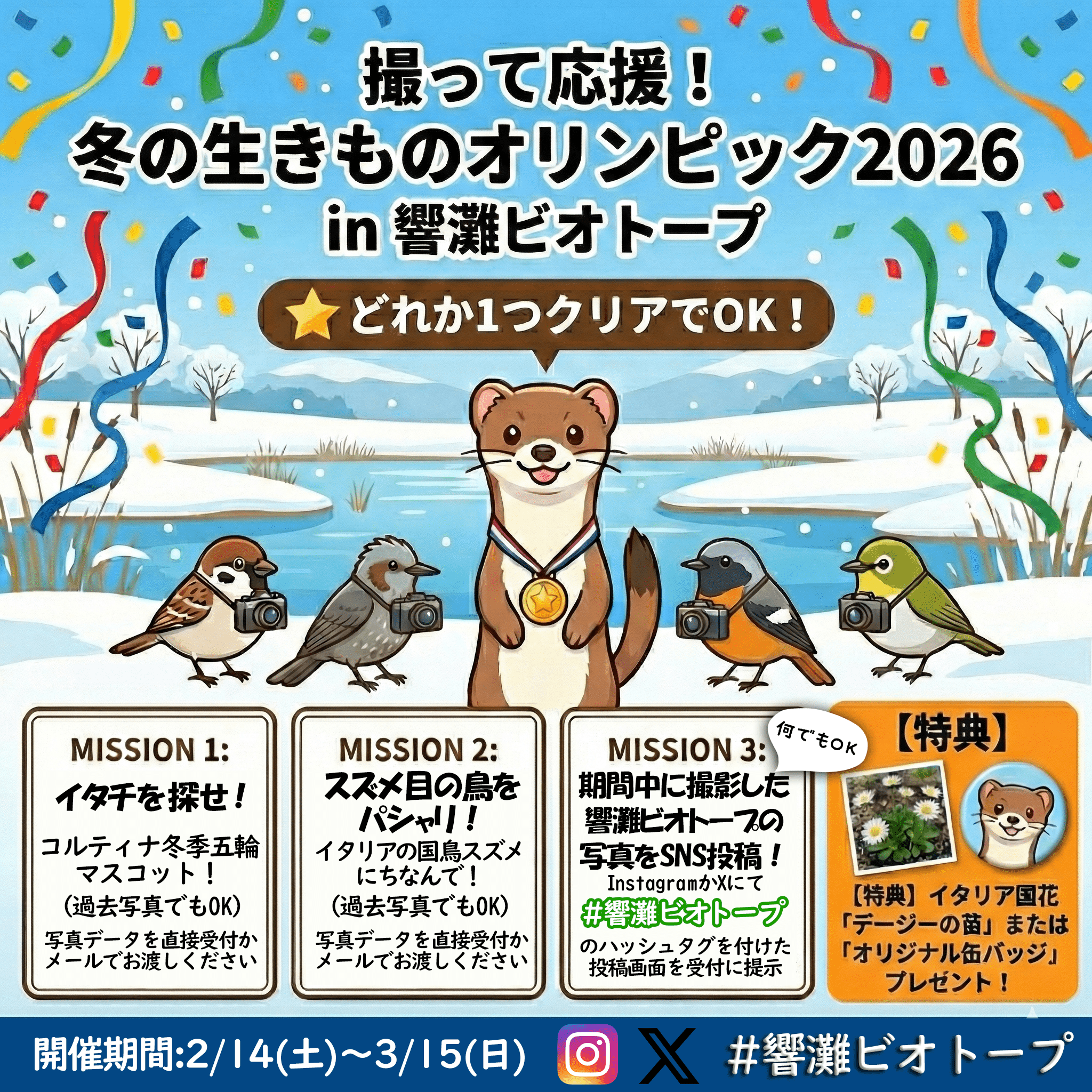 今年の冬季五輪・パラリンピック開催地である「イタリア」や、大会マスコットにちなんだ生きものをテーマにした、参加型の写真企画です。