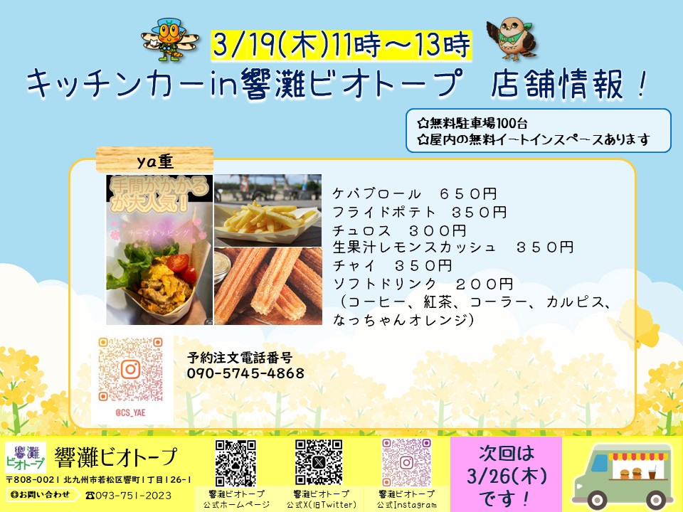 松屋さんは祝日を除く毎週月・水・金の10時45分~13時に響灘ビオトープネイチャーセンター内で出店します!