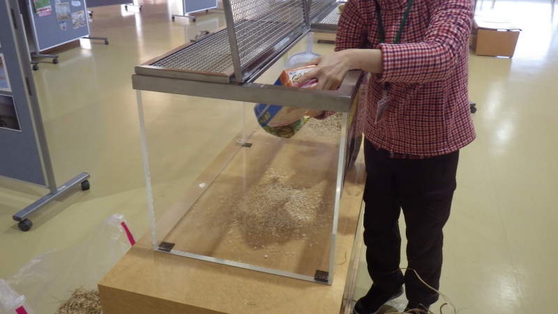 小屋の掃除は、1ヶ月〜1ヶ月半で1回行うようにと「恩賜上野動物園(東京都)」カヤネズミ飼育担当の方から教えてもらった。