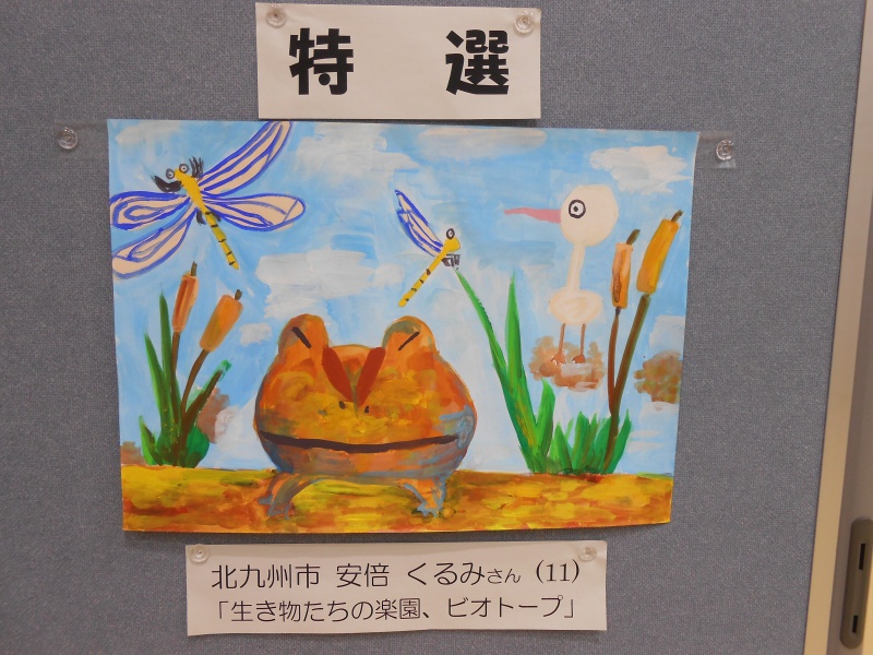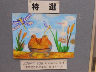 特選に輝いたのは、「生き物たちの楽園、ビオトープ」を描いてくださった、阿部くるみさん。