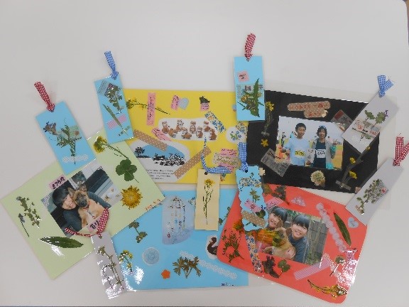 用意していただいた思い出の写真やお気に入りの写真を園内の外来植物でかわいく飾ります♪