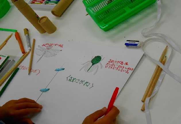 捕まえた昆虫たちを持って講義室へ戻り、