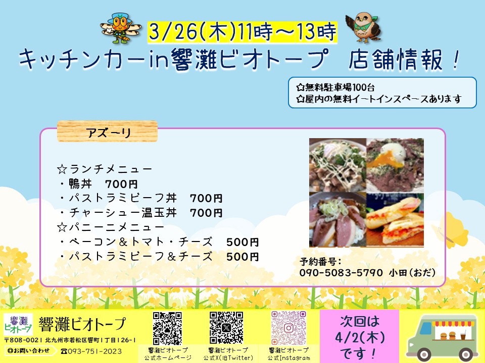 松屋さんは祝日を除く毎週月・水・金の10時45分~13時に響灘ビオトープネイチャーセンター内で出店します!