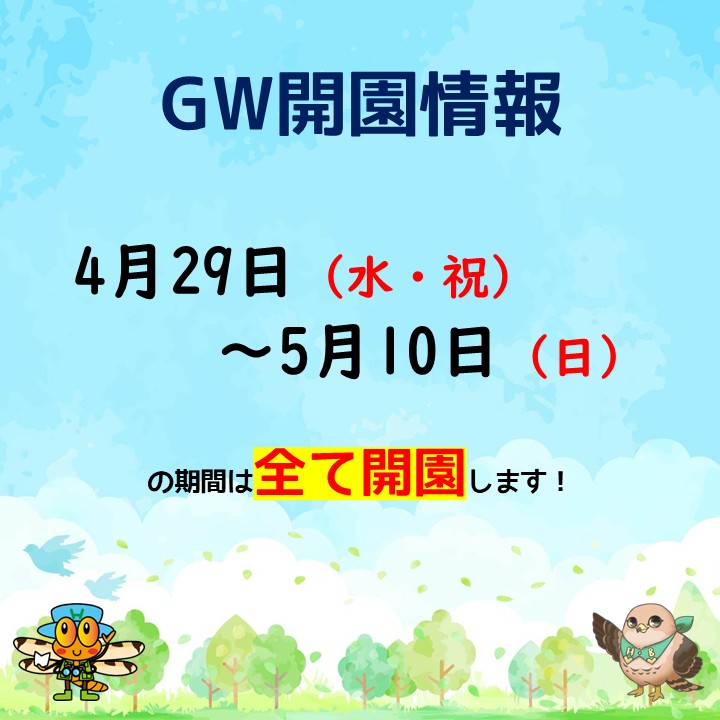 4月29日(水・祝)~5月10日(日)は全て開園いたします